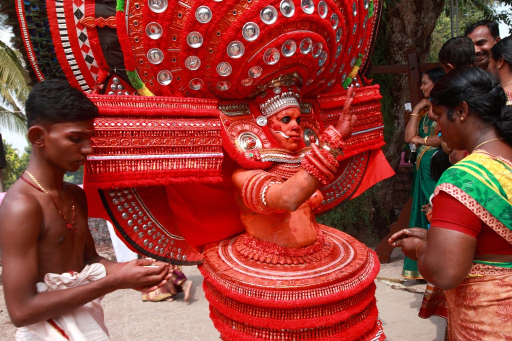 A ritual form of worship in Kerala where gods and goddesses enter the earthly realm by possessing the body of a dancer.