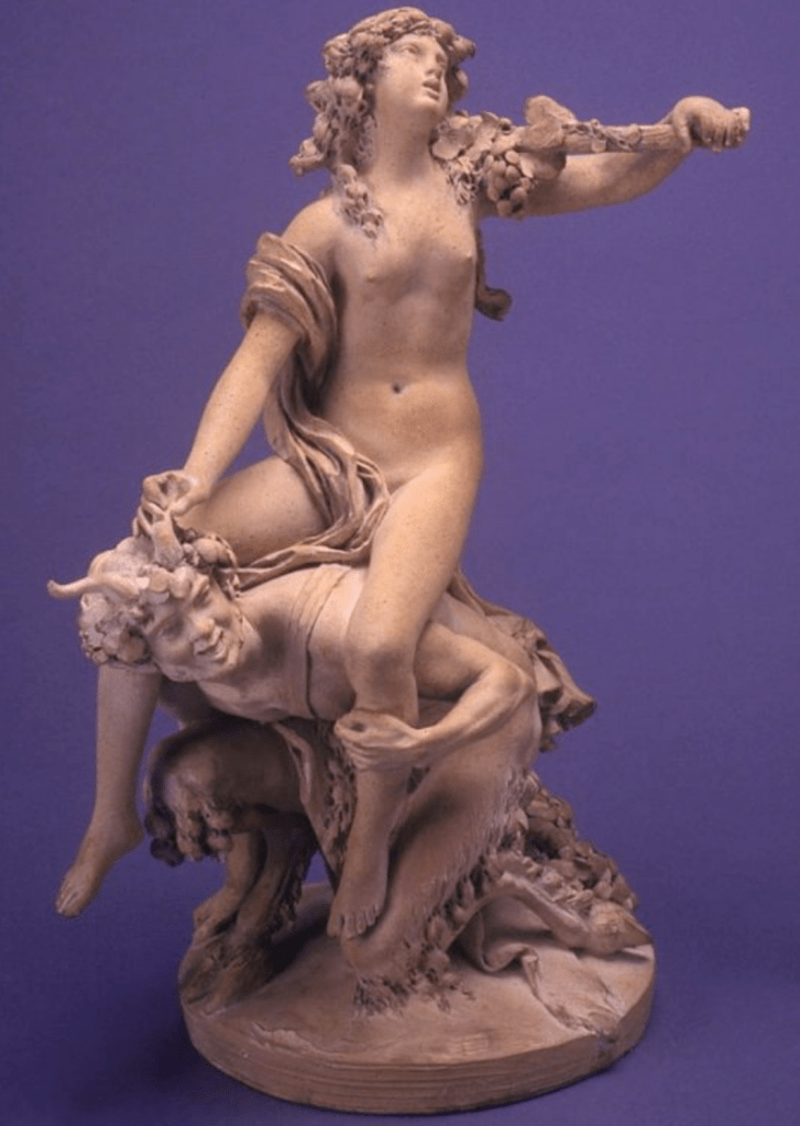 Besides being everyday barnyard creatures, goats have a surprisingly sacred Antique Greek pedigree, having been sacrificed on altars at civic theatrical festivals featuring tragedy (literally, “goat song”), comedy, and satyr plays[6]. A satyr is half-goat (legs), half-human (torso), being one of those creations “which represented, in the Greek imagination, the irrational elements of human nature, the remnants of animal impulse that the Olympian religion had attempted to sublimate or subdue,” as Kenneth Clark notes in The Nude.[7] Both Fragonard and Clodion, as winners of the Prix de Rome, were sent by the Académie Royale to Italy for years of study, which included copying antique sculpture.