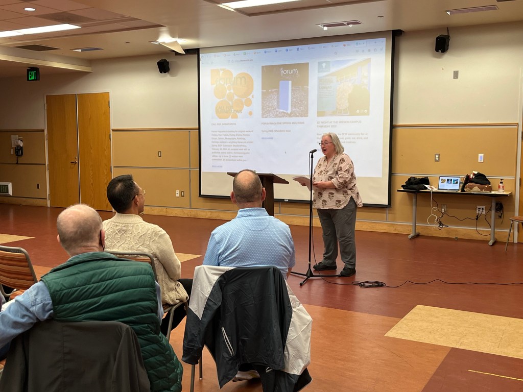 The event featured local writers, students, and word-loving community members joined for an evening of literature, pupusas, and reading. CCSF English students and local writers read their work to an enthusiastic crowd, with the audience and readers mingling between readings.